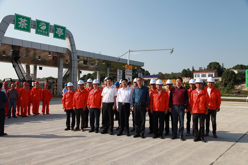 9月29日下午4時許,省委書記、省人大常委會主任杜家毫一行在岳望高速茶亭收費站前坪,親切慰問岳望高速建設(shè)者代表們,與交水建集團黨委書記、董事長方聯(lián)民,黨委副書記、總經(jīng)理胡建華,集團黨委書記、董事長楊宏偉等親切握手并宣布通車。
